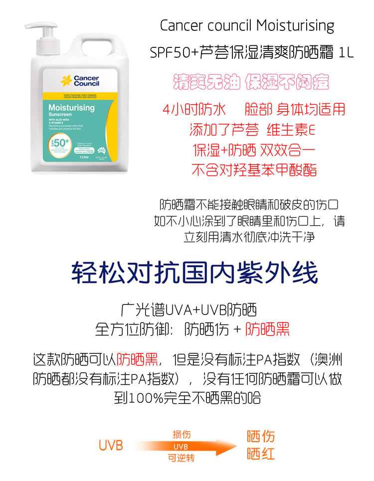 The skin cancer foundation believes that the best sunscreen is the one you are most likely to use, so long as it provides safe and effective protection. The cancer council moisturising sunscreen is too much for my skin (aging/dehydrated/combo skin). Product cancer council moisturising sunscreen spf. More specifically, evaluating its active ingredients, and how it permeates and soaks up into the skin after application. 1l pump bottle with handle.