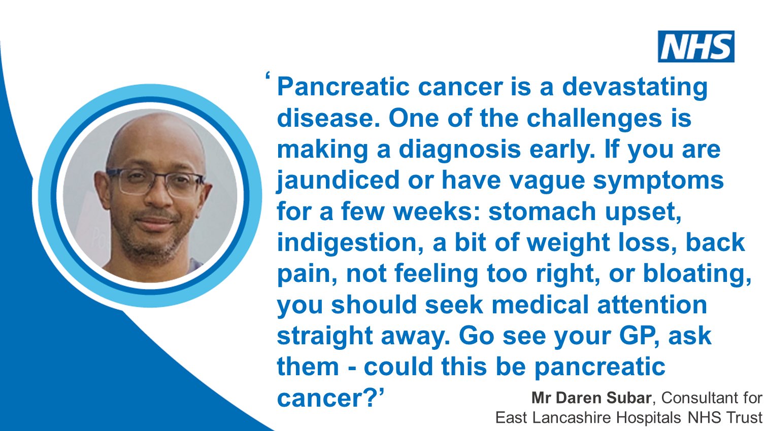The pancreatic cancer action network can connect you with a pancreatic cancer survivor who can provide support by phone or email. Signs and symptoms of pancreatic cancer pancreatic cancer may not cause symptoms for a long time. It helps you digest your food and makes hormones, such as insulin. Initially, pancreatic cancer tends to be silent and painless as it grows. Everyone is unique and their experience of pancreatic cancer is different. Pancreatic cancer occurs when cells in the pancreas grow out of control and form a tumour. It can help to bring someone with you to any appointments you have. You should be referred for surgery if the scan shows that: The first noticeable symptoms of pancreatic cancer are often: For example, constipation, weight loss or vomiting and diarrhoea. However, if you experience this, together with any of these other symptoms, it is worth going to your gp to try to find out the cause. The rapid diagnostic service at east lancashire hospitals nhs trust has given a pancreatic cancer patient a new chance at life, after spotting the symptoms that had been left untreated for months due to a difficult diagnosis. Symptoms that might occur include abdominal pain, nausea or vomiting, and, rarely, jaundice (yellowing of the skin or whites of the eye) or unintentional weight loss.